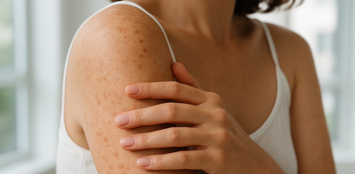 - Systémové ochorenia – Addisonova choroba, Cushingov syndróm či poruchy pečene môžu spôsobovať nerovnomerné sfarbenie pokožky, ktoré sa prejavuje ako hyperpigmentácia.