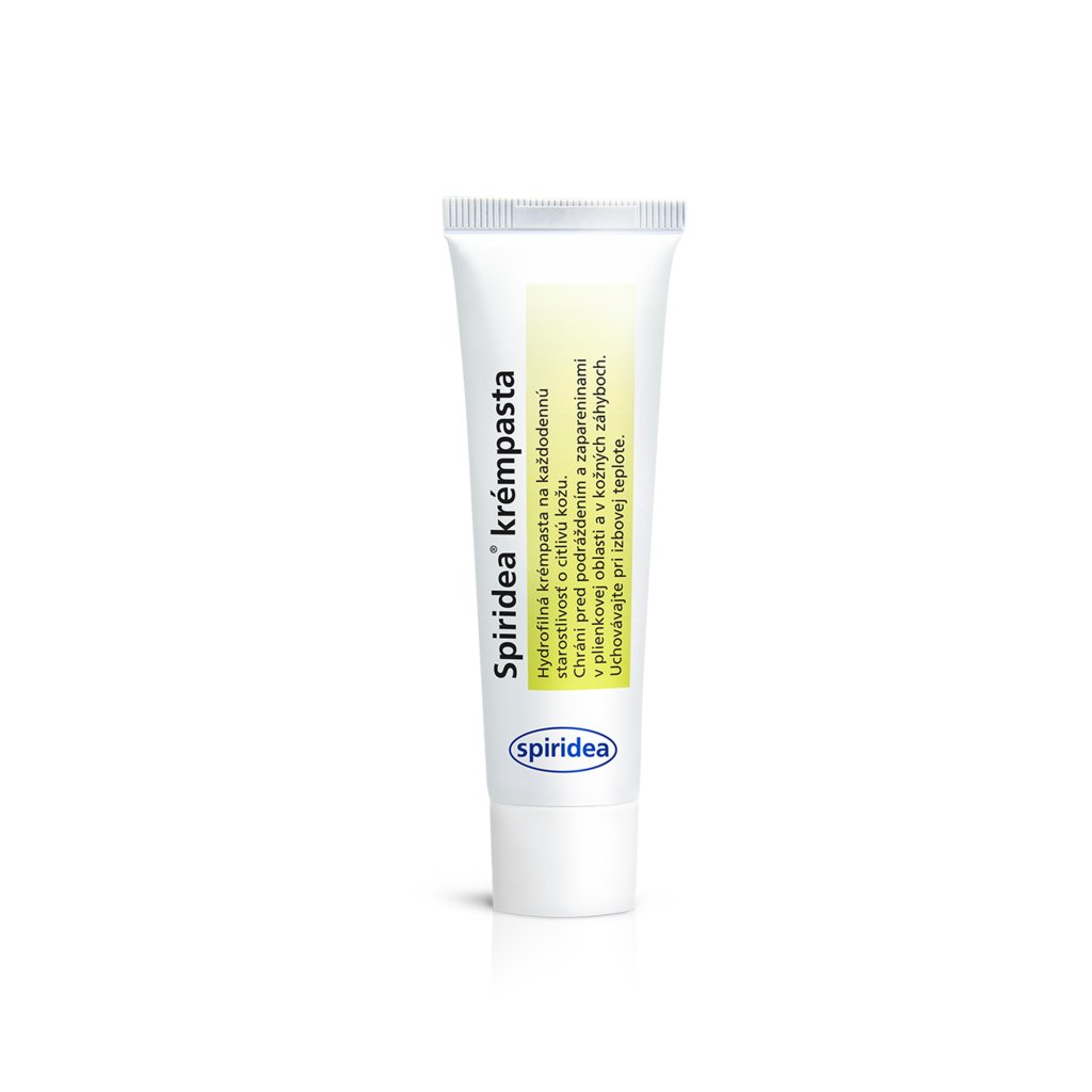 Spiridea Krémpasta je hydrofilná krémpasta určená na každodennú starostlivosť o citlivú pokožku v miestach, kde dochádza k nadmernému treniu. Je obzvlášť vhodná na macerované (rozmočené a sparené) plochy kože. Pomáha pri potláčaní vzniku zaparenín v plienkovej oblasti a v intertriginóznych oblastiach u detí a dospelých. Chráni pred narušením pokožky, ktoré vzniká odieraním, znižuje riziko vzniku infekcií vďaka ochrannému systému zabraňujúcemu rastu mikroorganizmov a kvasiniek a zmierňuje svrbenie.